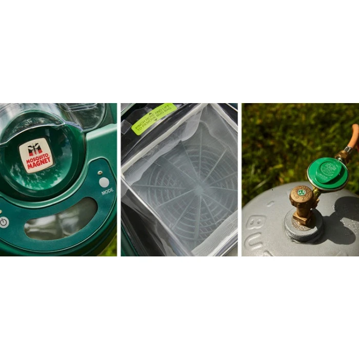 Cet appareil attire et piège les moustiques de manière naturelle et autonome, sans un bruit ni une odeur. Il imite tout simplement notre respiration par l’intermédiaire d’une conversion de gaz de butane en CO2. Pour être efficace, cette technique doit être complétée par des attractants naturels à base de phéromones tels que le R-Octenol, pour les moustiques communs, et l’Atrakta, pour les moustiques tigres (non fournis).