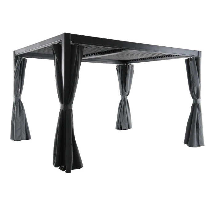 Vous pouvez d’autant plus vous protéger des rayons du soleil grâce aux rideaux postés aux quatre coins de votre pergola.
